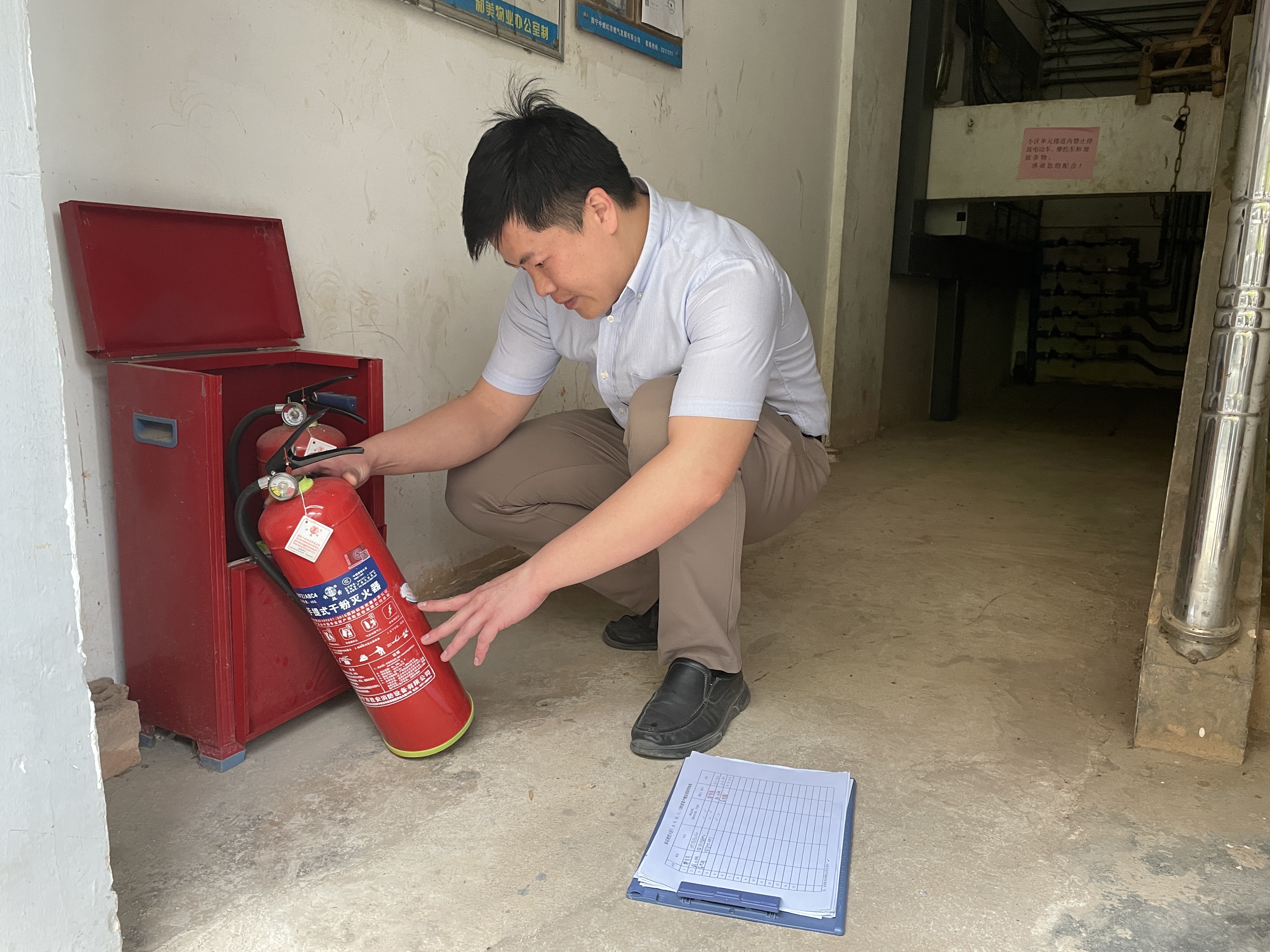 他安排人员编印《钻石小区杂物房使用管理规定》,协同部门人员和物业公司人员,将管理规定逐户送到小区业主手中,对用电安全进行宣传,要求存在私拉电线行为的业主立刻整改,并对小区各楼道灭火器进行了地毯式排查,确保设备正常使用……