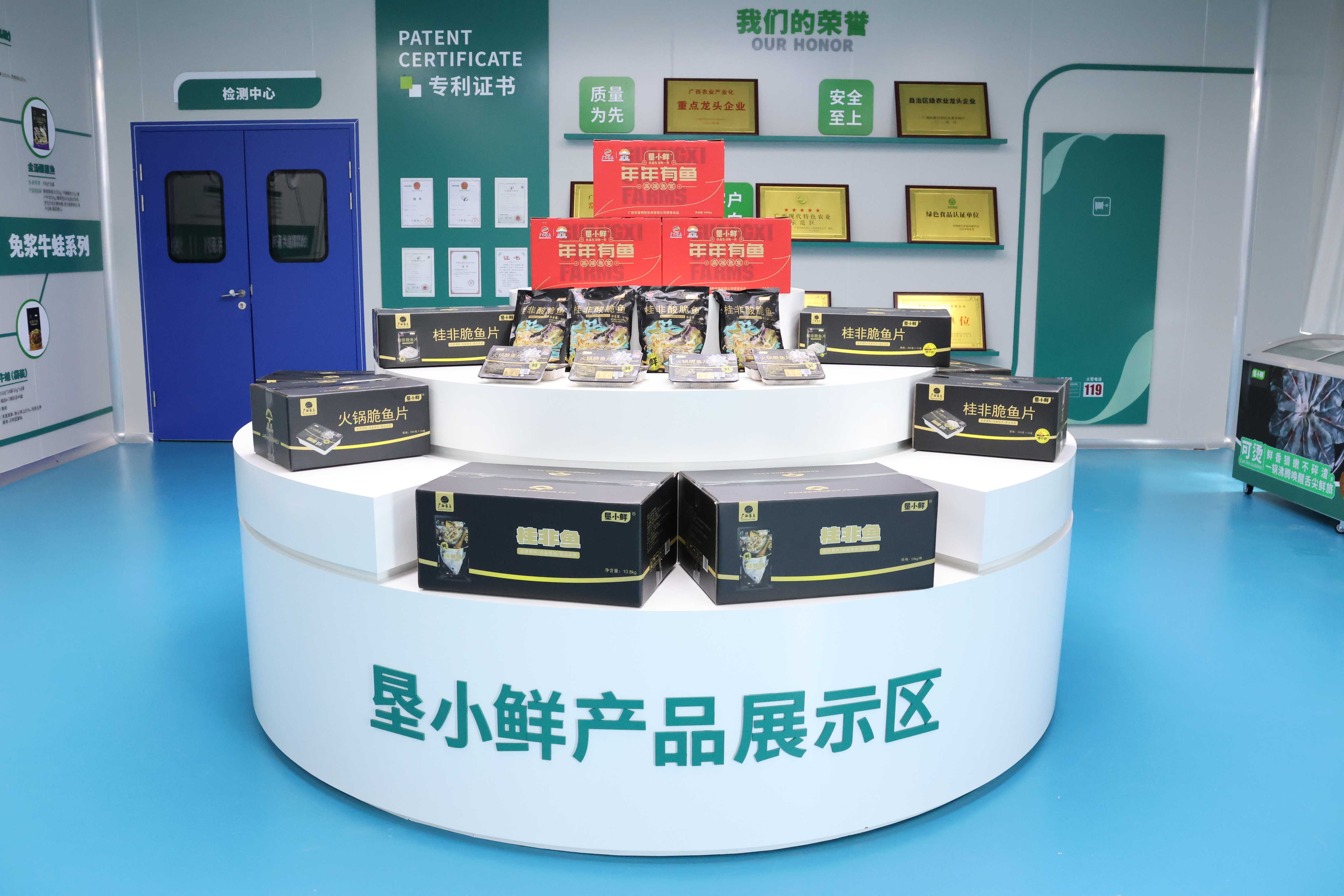 在明阳现代渔业创新示范中心,209个陆基圆池1.2万个数据节点闪烁于智能控制大厅,这里的脆肉罗非鱼过上了“五星级生活”。脆肉罗非鱼经过明阳“垦小鲜”预制菜加工厂20道工序处理及零下196℃液氨速冻隧道锁鲜,鱼片肉质晶莹透亮、鱼片无刺、鲜美脆弹、无土腥味,蛋白质、不饱和脂肪酸百分比、氨基酸总量等指标均优于同类产品。